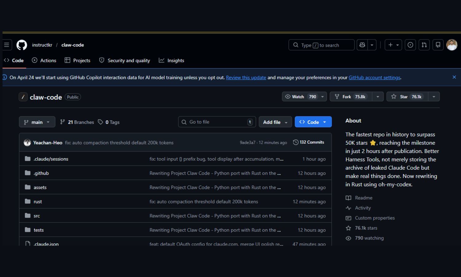 One notable example is Sigrid Jin (@realsigridjin). She cloned the leaked repo late at night, fell asleep, and woke up to find it had over 50,000 stars on GitHub Repo. Her girlfriend, a copyright lawyer, suggested that simply hosting the original code was risky. So the team decided to rewrite the entire system in Python, using the leaked code as a reference. That, they argued, was a clean‑room reimplementation and legally distinct from the original.
